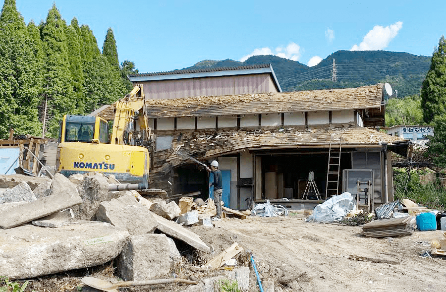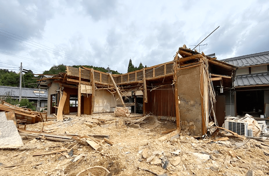 「建物全体の解体工事」とは、住居や物置などを壊して更地にする、建設物の解体工事を指します。
