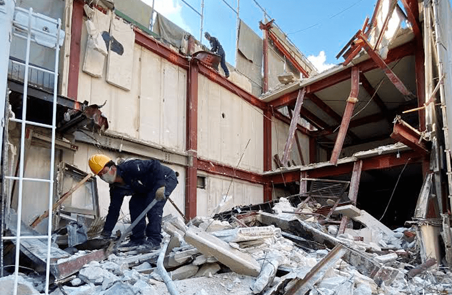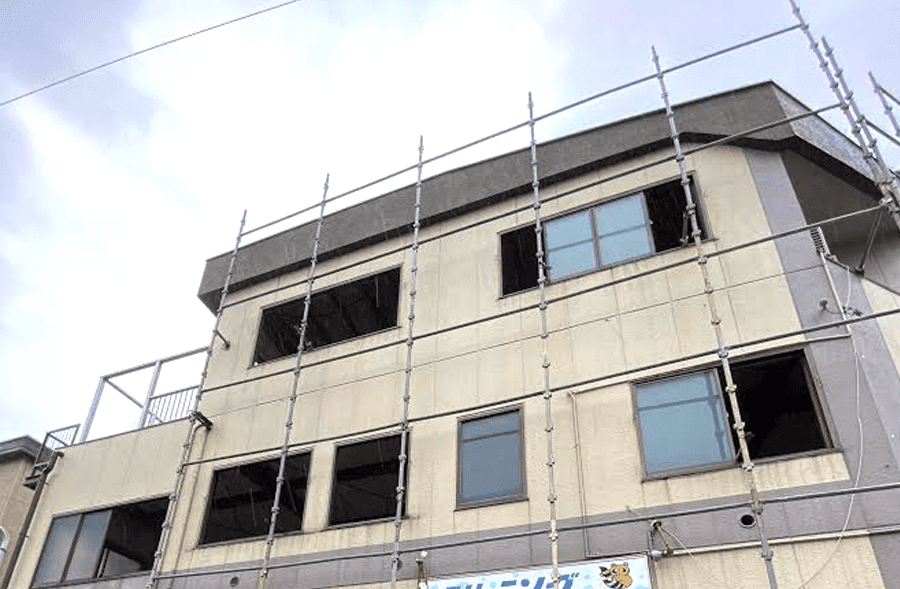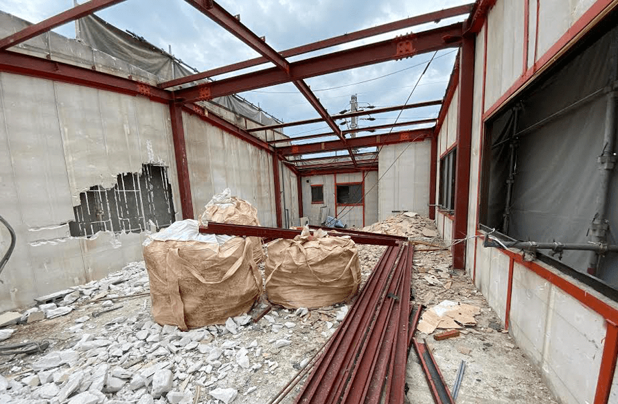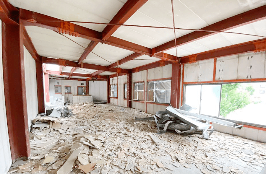 アスベストの使用がある鉄骨造は、アスベストの粉塵が飛散することを防ぐため、特定の部分を手作業で解体し、以降は通常の鉄骨造と同様の工法で進めます。