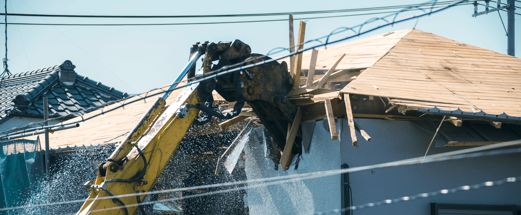 建物全体の解体工事は、解体業者の豊富な経験と高い技術が求められます。建物の構造は、造られた年代や土地、その工法などによってまったく異なり、建物によって解体工事の進め方を変えていかなければなりません。また、解体工事の中でも最も大掛かりな工事になるため、近隣への騒音や粉塵などの配慮が大変重要になります。